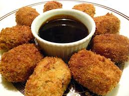 Fritos de carne ao estilo japonês, geralmente carne de galinha